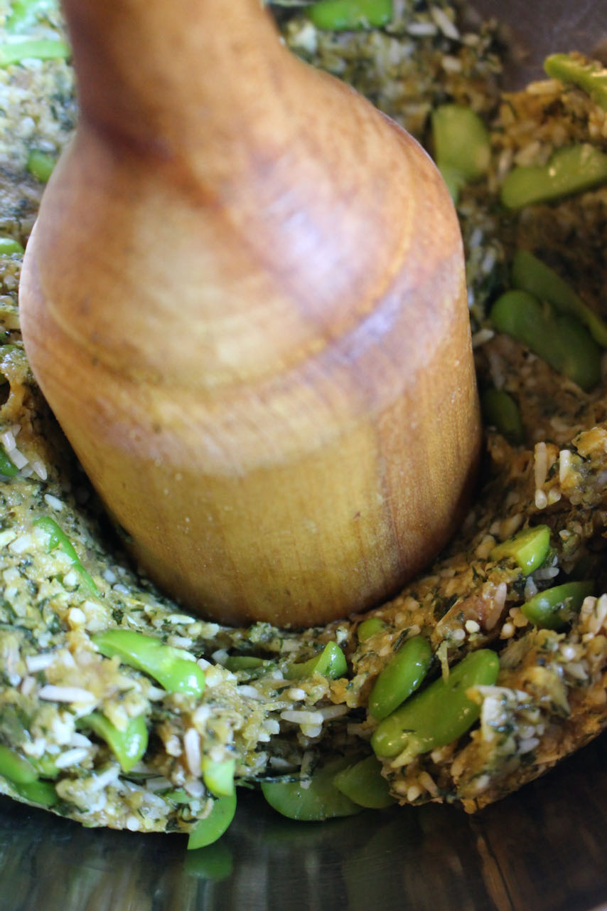 - Mescolate tutti gli ingredienti con un martello da cucina finche diventi appiccicosa. Il grasso della carne funge da collante.